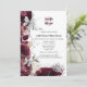Uma bela ilustração aquosa da mãe de borboletas pérolas que voam através de rosas burgundy/maron e folhagem de folhas prateada e dourada misturada. Uma incisão branca tem modelos para sua redação. São ideais para o destino costeiro inspirado na natureza; ilha tropical; casamentos temáticos de campo e praia, chás de fraldas e aniversários. Personalize as modelos para se adequar à sua ocasião.