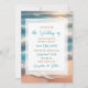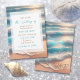 Linda costa oceânica pastel para um bonito casamento à beira da praia. Azuis macios e convites de casamento para a praia marrom-arenosa.