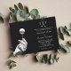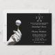 Convide seus hóspedes para um casamento elegante e temido de golfe com esta mão de luva branca e preta segurando uma teia com bola de golfe nela. Adicione as iniciais daqueles que se casam com a crista de dois tacos de golfe no topo, e adicione as informações nas modelos criadas para esta design. Preto e branco, elegante design elegante numa base preta sólida.
