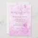 Convite de casamento elegante com detalhes de seu evento sobre um fundo de cor-de-água rosa pintado manualmente.