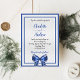 Um convite moderno, elegante e de casamento. Fundo metálico de aspecto fino prateado decorado com armações azuis e arcos reais. Personalize e adicione seus nomes e detalhes do casamento. Letras pretas coloridas.