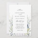 Aprecie os amigos e a família com este elegante convite para casamento com um delicado verde-aquarela e azul e floral branco armando seus detalhes de casamento. Elementos modernos de caligrafia escrita à mão. De volta em elegante tom azul empoeirado. Também disponível em azul-marinho e branco com floral. Parte de nossa coleção "Elegant Bliss" com uma variedade de convites coordenadores, inserções de cartões, acessórios de correspondência, salvamento de datas, cartas de agradecimento e sinais de eventos e produtos.