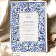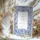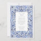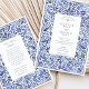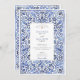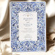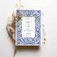 Transportem seus convidados para a costa ensolarada do Mediterrâneo com este convite de casamento incrivelmente elegante. Inspirado pela típica obra-prima italiana e pela cerâmica azul de Delft, este design apresenta uma intrincada borda de cor d'água pintada à mão de folhagem giratória e motivos florais. Uma rica paleta de blues, de cobalto profundo e marinho a azul-céu suave, cria um belo efeito dimensional contra um fundo branco nítido. Seus detalhes de casamento são apresentados no centro com tipografia clássica e sofisticada, completando o eterno e o visual artístico. Este convite é perfeito para um casamento de destino, um tema clássico azul e branco, ou qualquer casal que busque um design que seja simultaneamente ornamentado e chique sem esforço.