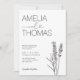 Convite Elegante para Casamento de Lavandas com Caligrafia Moderna Celebre seu dia especial com este convite elegante e moderno para casamento. Apresentando delicadas flores lavandas desenhadas a tinta preta e emparelhadas com um design limpo e minimalista, esse convite é perfeito para um casamento chic e sofisticado. Personalize as cores e fontes para corresponder ao tema do casamento e torná-lo realmente seu.