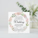 Estes belos convites para o casamento apresentam uma mão rústica, mas bela, pintada de aquarela de rosas rosa-pinceladas, flores, folhagem e rochas de jardim verde com um arco branco de cetim no fundo. O design é simples, mas elegante, com a inscrição de ricos em um fundo branco. A parte de trás apresenta um elegante buquê floral amarrado com uma fita branca sobre um fundo cor-de-rosa marmoreado. Uma bela maneira de convidar seus amigos e família para compartilhar em seu dia especial.