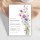Celebrar seu dia especial com este convite de casamento elegante de Watercolor Whimsical Wildflower, moderno e refinado, que transmite o espírito da beleza da natureza e traz uma explosão de verde para o seu tema de casamento. Os elementos botânicos e as flores delicadas criam um sentimento único e rústico, perfeito para casais que buscam um casamento boêmico ou jardim. Com seus arranjos coloridos e um roteiro de caligrafia refinado, este convite irá facilmente transportar seus hóspedes para uma terra maravilhosa do verão. Quer você esteja trocando votos em um cenário romântico de quintal ou em um espaço interior exuberante, este eterno e este convite para na moda define perfeitamente o tom para sua celebração mágica.