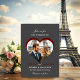 apresentando um roteiro elegante e uma bela foto em forma de coração. A elegante paleta de cores de cinzas exude sofisticação contemporânea, enquanto a delicada escrita adiciona um toque de eterno. Perfeito para casais que buscam um convite na moda e romântico que capta a essência de sua história de amor.