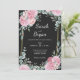 Convites Casamento Elegante de Frame de Boho Preto Floral