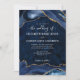 Convite para Casamento Elegante de Geode de Agato Dourado Azul do Marinho Moderno