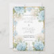Belo e elegante aquarela azul e hídrangas brancas em aquarelas moles criando este convite de casamento para qualquer estação. A falso estrutura de ouro em frente e ao verso deste belo convite aumenta sua beleza. 100% de satisfação do cliente com a Zazzle todos os dias.