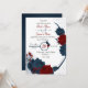 Elegante marinho azul e flores vermelhas burgundy incrível convite para casamento romântico