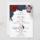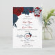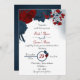 Elegante marinho azul e flores vermelhas incrível convite para casamento romântico