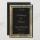 Um elegante casamento elegante de quadro geométrico preto e ouro. Este design minimalista apresenta um adorável e elegante design de borda de ouro geométrico num fundo preto. Personalize este design com sua mensagem e informações personalizadas. Todas as designs são impressas.