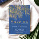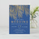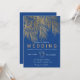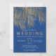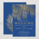 Aquarela de palmeira de ouro simples e moderna, com uma simples tipografia, uma moda e tema de casamento tropical em folha de palmeiras com cor azul do ano de casamento.