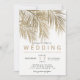 Aquarela de palmeira de ouro simples e moderna, com uma simples tipografia, uma moda e tema de casamento tropical em folha de palmeiras.