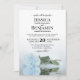 Este convite para o casamento é elegante, exuberante e romântico. Apresenta uma bela fotografia de um rosa azul-poeirento, poeirento ou azul, de cor azul, de solteiro longo, que se encontra sobre o seu lado, refletindo em água com ondas e ondulações. A parte de trás é uma cor azul-cinza marmoreada. Uma bela maneira de convidar seus amigos e família para compartilhar em seu dia especial.