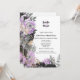 Uma bela ilustração aquosa da mãe das borboletas pérolas que voam através do roxo lavanda; rosas pretos de carvão e folhagem mista prateada e dourada. Uma incisão branca tem modelos para sua redação. São ideais para o destino costeiro inspirado na natureza; ilha tropical; casamentos temáticos de campo e praia, chás de fraldas e aniversários. Personalize as modelos para se adequar à sua ocasião.