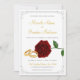 Apresentando o último convite romântico para casamento - perfeito para fazer uma declaração inesquecível para seus convidados. Com as clássicas rosas vermelhas burgundy e o guião dourado, este elegante convite de casamento é a forma perfeita de anunciar o seu dia especial. Os anéis clássicos de casamento são apresentados lindamente para criar uma aparência eterno e os detalhes refinados farão seu casamento inesquecível. Este convite romântico para o casamento faz seus convidados sorrirem. A partir do momento em que o receberem, saberão que este é um evento especial. As rosas vermelhas mornas são perfeitas para qualquer casamento de na moda, enquanto o guião dourado adiciona um toque de elegância. E as alianças clássicas simbolizarão seu compromisso com seu parceiro. Avise aos seus convidados que seu dia especial está chegando em breve com este convite romântico. O papel de qualidade está seguro de suportar o teste do tempo, para que possas guardar a memória do teu casamento para sempre. Os detalhes fantásticos vão vomitar seus hóspedes e fazer do seu casamento uma ocasião memorável. Diga aos convidados que seu casamento será um para os livros com este convite incrível. Crie o momento perfeito e faça do seu casamento o evento mais bonito com este convite romântico de casamento.