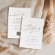 Elegante design de script chic moderno minimalista com fonte eterno serif em preto e branco, detalhes do casamento e código QR do site na parte traseira, simples e limpo. Excelente tudo em um convite de casamento para casamento romântico minimalista, casamento clássico moderno, casamento de luxo simples.