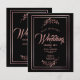 Design preto de jato com acentos de folha de rosa de ouro falsos e escrita à mão. Convite para Casamento Elegante de Roteiro Dourado de Floral Negra. Personalize com o texto do seu casamento.
