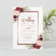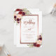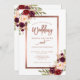 Belo design floral vermelho, cor-de-água, cor-de-rosa, arrojado, com sotaques falsos de folha de ouro rosa e escrita à mão. Chamada de Casamento Elegante de Rosa Floral Vermelho Burgundy. Personalizar com o texto do casamento