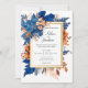 As cores escuras conhecem a elegância do eterno neste Convite Elegante de Casamento de Cobalto Blue Orange Terracotta Boho, projetado para dar o tom perfeito para o seu grande dia. O azul de cobalto impressionante, emparelhado com terracota quente e sofisticados cor-de-rosa pincelados, cria uma paleta de cores impressionante que parece moderna e romântica. Um delicado quadro de ouro destaca o design, enquanto os belos detalhes florais de aquarela e o roteiro de caligrafia na moda adicionam um toque chic sem esforço. Este convite é versátil para tantos temas de casamento, quer você esteja planejando um encontro de outono rústico, uma celebração romântica de jardim, um casamento de boho de verão, ou um evento elegante de inverno. Personalize todos os detalhes facilmente com seus nomes, data de casamento e local, fazer-o exclusivamente seu. Além disso, para casais ocupados, é simples enviar digitalmente ou encomendar impressões, garantindo o compartilhamento sem estresse. Peça a sua e comece a celebrar sua história de amor em estilo!