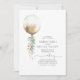 Simples convites de casamento minimalistas apresentam o balão gigante de ouro brilhante e a granja de folhagem de eucalipto verde