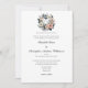 Um convite de casamento para um monograma floral verde cor-de-rosa e sábio; texto tradicional com um espaço para os nomes dos pais dos noivos, se quiserem. Adicione suas iniciais na coroa no topo. Clássico e Elegante.