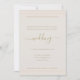 Um design moderno minimalista com faixas sutis em fundo de champanhe com tipografia em ouro. O RSVP correspondente está disponível em: https://www.zazzle.com/modern_minimalist_champagne_gold_wedding_rsvp_invitation-256477951357225921 O cartão de gabinete detalhado correspondente está disponível em: https://www.zazzle.com/modern_minimalist_champagne_gold_hotel_detail_enclosure_card-256763335722306559