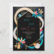 Esta imagem apresenta um design abstrato vibrante e moderno, adequado para um convite de casamento ou evento semelhante. O design centra-se em torno de uma estrutura hexagonal preta com um contorno de ouro, colocado sobre um fundo escuro. Ao redor do quadro estão formas arrojadas e fluentes em cores como azul-escuro, cor-de-rosa, bege e e azul-escuro, adicionando um toque dinâmico e vivo à composição. O uso de elementos florais geométricos em cores contrastantes aumenta o apelo visual, fazer que esse design se sinta fresco e contemporâneo. O arranjo de cores e formas cria uma sensação de equilíbrio e harmonia, enquanto o quadro hexagonal fornece um ponto focal estruturado para qualquer texto ou detalhes que possam ser adicionados. No geral, essa design exude um senso de elegância moderna e sofisticação lúdica, fazer-a perfeita para um casamento que abraça um tema colorido e contemporâneo. Personalize o texto relativo aos nomes e detalhes do casamento. Você pode baixar a placa para seu dispositivo móvel ou computador.