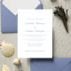 o design mostra um convite de casamento clássico e elegante em caligrafia clássica azul empoeirada e tipografia com fundo branco. o design é extremamente clássico e será ideal para o seu casamento.