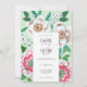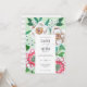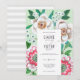 Caroline Bonne Muller ©2019 O convite para o casamento foi pintado com folhas verdes e flores brancas e cor-de-rosa em fundo verde e cores de sotaque fuchsia.