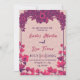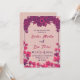 Convite de casamento elegante com um fundo bege macio com um padrão geométrico sutil. O topo e os lados são decorados com flores e folhagem cor-de-rosa-escuras e arrojadas, o design é perfeito para um casamento sofisticado e elegante.