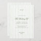 Ponha o tom para a sua celebração com este convite clássico de casamento verde-azeitona, desenhado com listras elegantes e detalhes do eterno. Perfeito para um casamento formal, cerimônia de jardim ou festa de noivado tradicional, este convite combina estilo sofisticado com uma paleta de cores refinada. Excelente para casais que procuram um convite de casamento minimalista, mas polido. Ideal para casamentos outono, eventos de temas verdes e celebrações clássicas modernas.