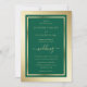 Elegante convite para casamento do esmerald green e do ouro com uma fonte moderna. Personalize facilmente esta placa de na moda on-line. Itens correspondentes disponíveis para complementar este convite de casamento moderno.