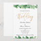 Um belo convite de casamento em eucalipto verde e dourado com caligrafia dourada.