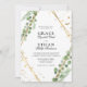 Elegante quadro geométrico Dourado Eucalyptus Invitation com estrelas de ouro.