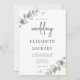 Duas impermeabilizações aquáticas de eucalipto verde enquadram o texto neste convite de casamento botânico moderno. A palavra "casamento" aparece na escrita de cinzas de carvão edgy. Personalize o convite com os nomes da noiva e noiva na tipografia serif e os detalhes do casamento em itálico.