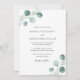 Convite de casamento elegante com um simples design com aquarela pintada de eucalipto verde no canto superior esquerdo e canto inferior direito. A parte de trás é uma sombra correspondente de verde médio. Este convite de casamento botânico apressado com uma reviravolta moderna é perfeito para um casamento de primavera ou verão.