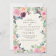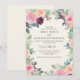 Convite de casamento elegante estilo boho com lindas flores cor-de-rosa e roxo em aquarela e folhas verde-sage em um cartão creme.