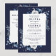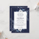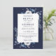 Este convite de casamento floral rústico azul-marinho elegante pode ser personalizado com suas informações em tipografia moderna com o código QR do site do seu casamento no verso. Projetado por Thisisnotme©