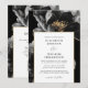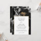 Este convite de casamento floral preto e dourado elegante pode ser personalizado com suas informações em tipografia moderna e os detalhes do seu casamento no verso, juntamente com o código QR do site do seu casamento. Criado por Thisisnotme©