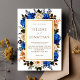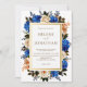Convites Casamento Elegante Floral de Cor Azul Cobalto