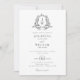 O Monograma Tradicional Crest Floral Elegante Invitation in classic black and white apresenta uma elegante crista de monograma botânico formal, com delicadas vinhas e sotaques florais. Este convite de eterno tem um estilo de chinoiserie barroco para o seu casamento de luxo inspirado na Vitoriana.