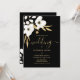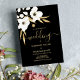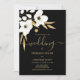 Caligrafia elegante de escrita manuscrita preta com convites para casamento florais de luxo preto, branco e ouro. Este simples e elegante convite floral de ouro é perfeito para qualquer garota chique clássica e sofisticada. Este design é ideal para um evento de festa moderno e elegante. Personalize este design com sua mensagem e informações personalizadas. Todas as designs são impressas