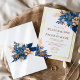 Crie a primeira impressão perfeita com este Marinho na moda Blue Terracotta Dourado Convite Floral Elegante. Este cartão de casamento maravilhoso apresenta flores azuis marinhos, aliadas a terracota quente e tons ferozes, fazer ideal para uma variedade de temas de casamento, do rustic e boho ao moderno e elegante. O quadro dourado adiciona um toque de sofisticação, enquanto o roteiro de caligrafia traz uma sensação pessoal e eterno a cada convite. Quer você esteja planejando um primavera, verão ou casamento outono, a paleta de cores complementa todas as vibrações sazonais. Com opções fáceis de personalização, você pode personalizar os detalhes para corresponder à sua visão exata, garantindo que ela se alinhe perfeitamente com o seu tema de casamento. Além disso, você tem a opção de enviar o convite digitalmente, fazer conveniente para seus convidados e economizando tempo.