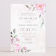 Um elegante convite de casamento floral com flores cor d'água cor-de-rosa com caligrafia manual moderna.