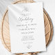 O design de casamento preto e branco elegante apresenta caligrafia moderna e uma bela fonte serifada clássica em preto sofisticado sobre um fundo branco crocante. A composição tradicional fresca é adornada com folhas botânicas decorativas. O design sem bordas permite que você escolha facilmente a forma do papel e personalize ainda mais seu convite. Envie um e-mail para suitesdeconvites@gmail.com com perguntas ou solicitações de cores personalizadas.