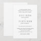 Convite para casamento preto e branco elegante com um design simples e mínimo com os nomes da noiva e do noivo em uma fonte serif tradicional e o meio e sobrenomes em uma escrita elegante de caligrafia. Um estilo clássico que é perfeito para um casamento formal.