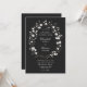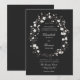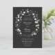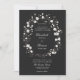Delicar flores silvestres e gramíneas entrelaçam-se para formar uma adorável coroa floral de casamentos neste moderno convite formal, elegante, preto e branco. Design elegante e eterno para o romântico moderno, esse convite floral combina o tema formal preto-e-branco com a estética feminina e lúdica das flores silvestres para a perfeita mistura de elegantes sofisticados.